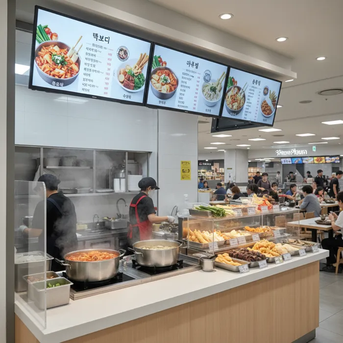 분식(떡볶이, 튀김 등)을 기본으로 하되, 마트 특성과 고객층에 맞게 메뉴 구성을 조정할 수 있습니다. 검증된 레시피를 제공해 드리므로 누가 만들어도 맛있습니다.